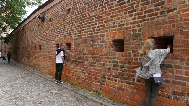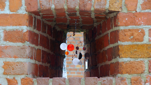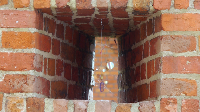 Zestaw rzeźbiarskich mobili (8szt, wys. ok. 20-30cm) umieszczonych w ambrazurach. W zależności od użytego materiału przepuszczają lub odbijają światło. Tworzą one prostokątny ruchomy obraz, a czynność patrzenia przypomina w efekcie zaglądanie do wnętrza mechanizmu, badanie jak działa on w środku, czy też obserwowanie świata przez wizjer aparatu fotograficznego. Część instalacji powstała w trakcie warsztatów z mieszkańcami miasta.
